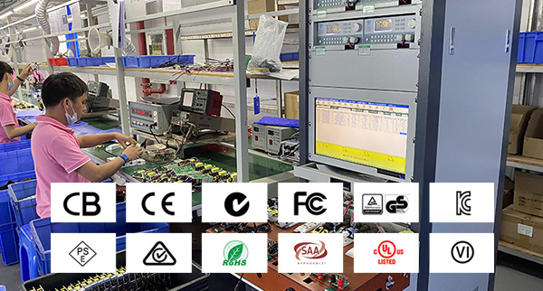 公司產(chǎn)品已通過多項國際和國內(nèi)權威認證,包括:ISO9001質(zhì)量管理體系認證;中國CCC認證;歐盟CB認證、CE認證GS認證、RoHS認證;美國FCC認證、ETL認證、UL認證(UL1310標準、UL60065標準、UL60950-1標準);日本PSE認證;韓國KC認證、KCC認證;印度BIS認證